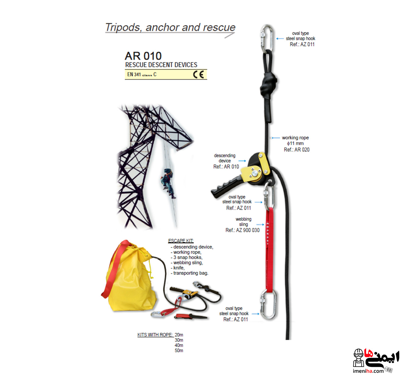 تجهیزات کامل نجات مصدوم در ارتفاع Protekt AR010 به طول 50 متر و قابل استفاده با هارنس ها و کمربندهای ایمنی و مناسب امداد و نجات و …