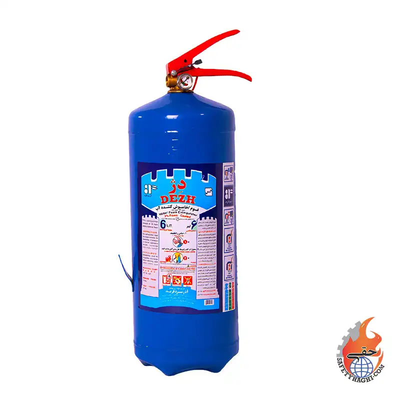 خرید کپسول آتش نشانی آب و گاز دژ 6 لیتری با گارانتی معتبر. قابل حمل دستی. رنگ بدنه: آبی. وزن کامل کپسول: 9 کیلوگرم. با بهترین قیمت.