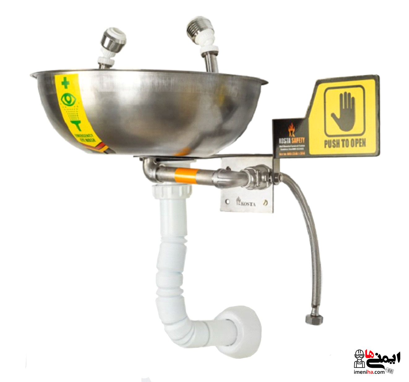 چشم شوی آزمایشگاهی استیل دستی WM-ES316SS | جنس لوله ها و اتصالات و قطعات استیل 304 و 316 | دارای سیستم فاضلاب درون ریز با راهبری سیستم دستی