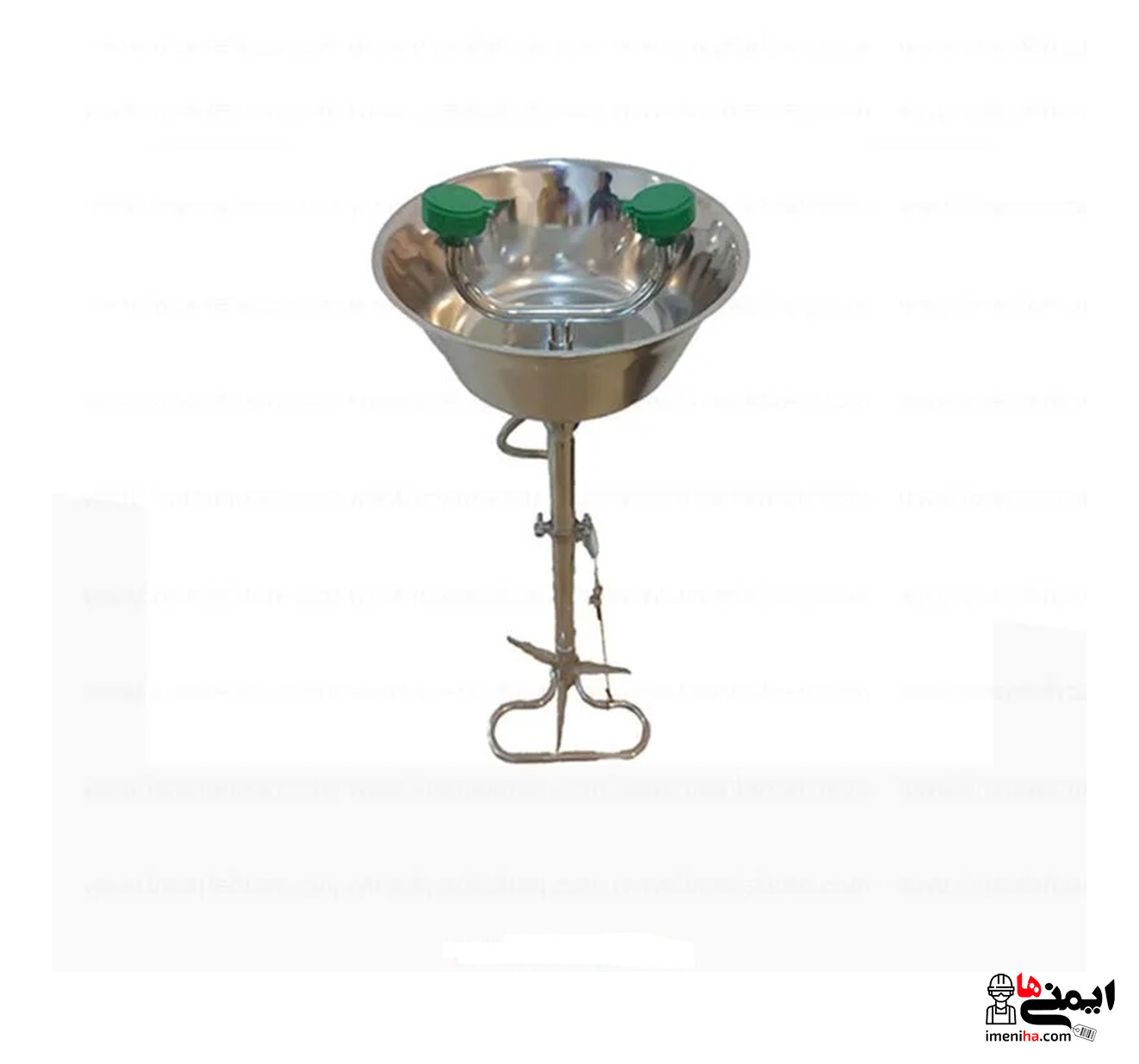 چشم شوی اضطراری پایه دار استیل مدل 450 PSS شست و شوی چشم به هنگام آغشتگی با مواد شیمیایی | جنس استیل ۳۱۶ رنگ نقره ای | راهبری پدالی