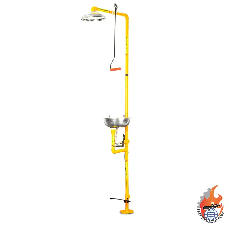 فروش دوش و چشم شوی کربن استیل گالوانیزه CS 1-SH-P | با راهبری دوش دستی و چشم شوی پدالی | شیر برنجی قابلیت باز و بسته سریع کمتر از یک ثانیه