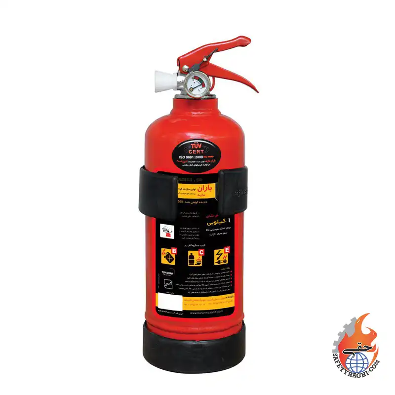 کپسول آتش نشانی پودری باران 1 کیلویی، دارای گواهینامه 2008 : 9001 ISO و مناسب پمپ بنزین و منازل و ادارات، خاموش کننده پودری باران 1 کیلویی.